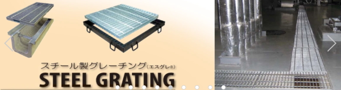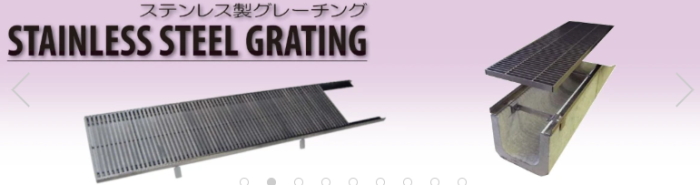 - ステンレス製グレーチング 耐食性が非常に高いため、厨房、薬品工場、病院、あるいは意匠性が求められるビルのエントランスなどで多用されます。