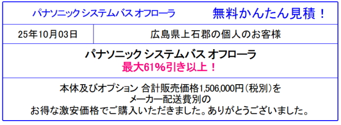パナソニック オフローラ 格安価格 販売専門◆パナソニックのシステムバス オフローラの値引率を確認!見積は面倒な入力なし 見積後の取止めOK!