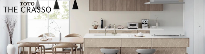 こんにちは!TOTOのシステムキッチン**「ザ・クラッソ(THE CRASSO)」**ですね。上質さと機能性を兼ね備えた、TOTOのハイグレードキッチンです。