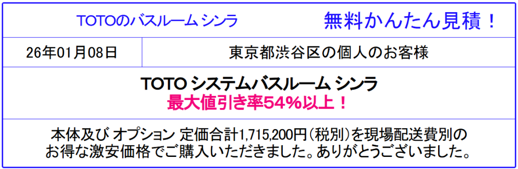 オートミ 現金問屋 最大54%引以上!TOTO システムバス  シンラ 販売専門 激安価格!