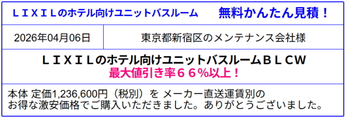 LIXIL 激安販売専門◆LIXILのホテル向けユニットバスルームBLCW 最大値引き率66%以上!見積無料!面倒な会員登録など一切なし!見積後のキャンセルOK!