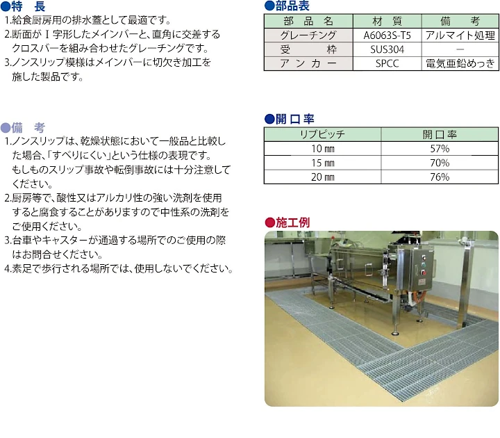 屋内・厨房用 みぞ蓋(H=20) アルミニウム製グレーチング
