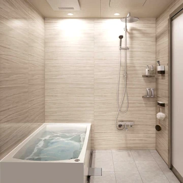 リラックス機能 ミストサウナ、ジェットバス、調光・調色機能付きの照明、浴室テレビなど、好みに応じたオプションを選びましょう。
